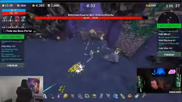 05:05:19Nach mehreren Versuchen gelingt es dem Streamer, einen Boss zu besiegen, was zu einer erheblichen Erleichterung führt. Er schaltet die Sniper frei und plant, den Run weiterzuspielen, obwohl er mehr XP benötigt. Im weiteren Verlauf des Streams konzentriert er sich auf das Sammeln von Ressourcen und das Verbessern seiner Ausrüstung.