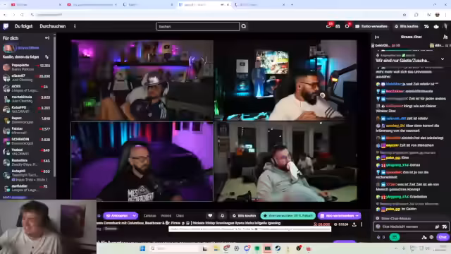 08:32:53Es wird über League of Legends Strategien diskutiert, einschließlich der Auswahl von Champions gegen Syndra und der Bedeutung von Exhaust gegen bestimmte Gegner. Der Streamer spricht über vergangene Spiele und die Vorfreude auf zukünftige, potenziell unterhaltsame Matches, insbesondere wenn er als ADC gegen drei Assassinen spielt. Es wird ein kurzer Ausflug in die Welt der kulinarischen Experimente gemacht, indem ein Rezept für Pepperoni-Pickle-Chips mit Ranch-Dip vorgestellt wird. Anschließend kehrt der Fokus zurück zu League of Legends, wobei Teamdynamiken, Fehler und Strategien analysiert werden. Der Streamer kommentiert die Spielweise seiner Mitspieler, kritisiert Fehlentscheidungen und lobt gelungene Aktionen. Es wird über das Verhalten eines Mitspielers namens Leonidas diskutiert, der trotz Fehlern weiterhin unterstützt wird. Der Streamer äußert Frustration über bestimmte Spielsituationen und die Entscheidungen seiner Teamkollegen, während er gleichzeitig versucht, das Spiel zu gewinnen.