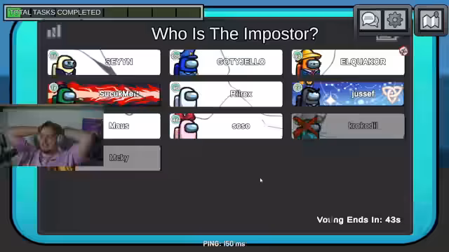 00:42:24Die Spieler müssen über mehrere Runden abstimmen, wer der Imposter sein könnte. Es kommt zu heftigen Diskussionen und Anschuldigungen. Die Stimmung ist aufgeheizt, und die Spieler versuchen, ihre Unschuld zu beweisen. Letztendlich werden mehrere Spieler ausgeschieden, aber die wahre Identität des Imposters bleibt unklar.