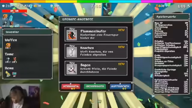 08:39:46Der Streamer verbringt einen Großteil des Streams damit, seinen Highscore im Spiel Megabonk zu verbessern. Er versucht, einen möglichst hohen Schaden zu erzielen, indem er Items wie Bonk, Gabel und Holy Book kombiniert und effizient farmt. Das Hauptziel ist es, die Marke von 300.000 zu überschreiten und die Top-Plätze im Steam-Friendless-Ranking zu erreichen. Er ist dabei oft von den Vorteilen von Items wie dem Magnet, der das Farmen extrem vereinfacht, überzeugt.