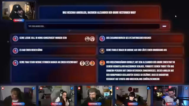 Nachdem technische Hürden ein gemeinsames Zocken verhinderten, wurde auf ein alternatives Format umgestellt. Mittels eines Raids wurde der Fokus auf ein interaktives Quiz gelegt, bei dem Teilnehmer mit cleveren Lügen um Punkte kämpften. Die Fragen reichten von historischen Persönlichkeiten bis zu absurden Begriffen.