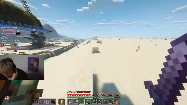 02:30:43Nach einer kurzen Pause wegen technischer Schwierigkeiten setzt der Streamer sein Minecraft-Spiel fort. Er beschäftigt sich mit dem Aufbau und der Gestaltung seines Basisgeländes, insbesondere dem Terraformen mit Sandstein. Er erwähnt die Notwendigkeit, das Gelände organischer gestalten zu wollen, um es wie natürliche Berge aussehen zu lassen. Nebenbei werden auch andere Spiele wie Battlefield erwähnt.
