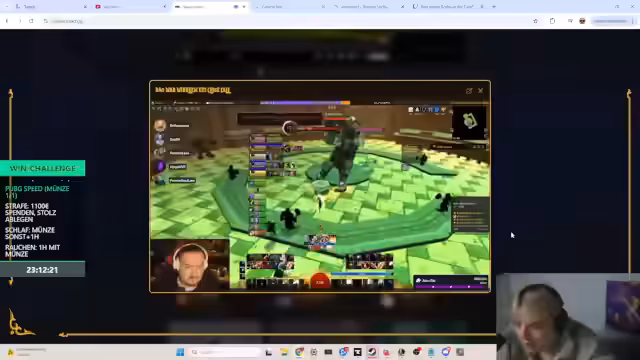 14:25:04Nach einer Reihe von Rückschlägen bricht die Moral im Team spürbar zusammen. Ein Mitspieler gibt offen auf und verlässt das Match, was beim Streamer einen Schock auslöst. Trotzdem beschließt der Streamer, durchzuhalten und den 'Shit' zu bestehen. Es kommt zu einem 'freundlichen Remake', da ein Gegner ebenfalls die Lust verloren hat. Das Spiel endet ohne klaren Gewinner, und der Streamer ist sichtlich verärgert über die verlorene Zeit und das inkonsistente Verhalten der Mitspieler.