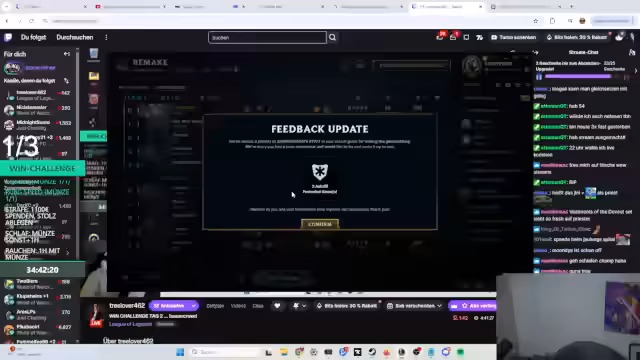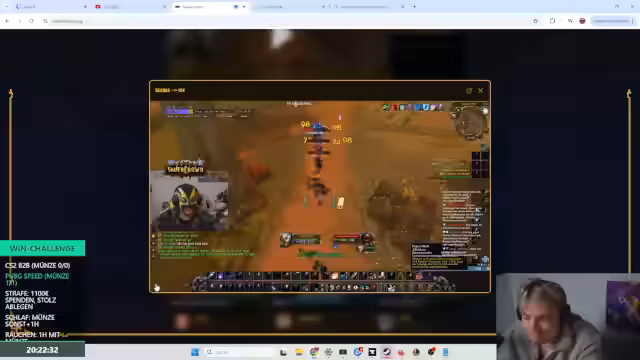 11:03:26Nach einer Reihe von Rückschlägen gelingt endlich ein knapper Sieg in League of Legends. Der Streamer ist erleichtert und spricht von einem 'Free Win' nach langem Kampf. Danach werden die Pläne für den weiteren Streamverlauf besprochen. Es wird eine Rückkehr zu World of Warcraft in der Brennenden Steppe in Betracht gezogen, um dort weiterzufarmen und das Weitermachen mit anderen Gildenmitgliedern wie Hachi zu diskutieren.