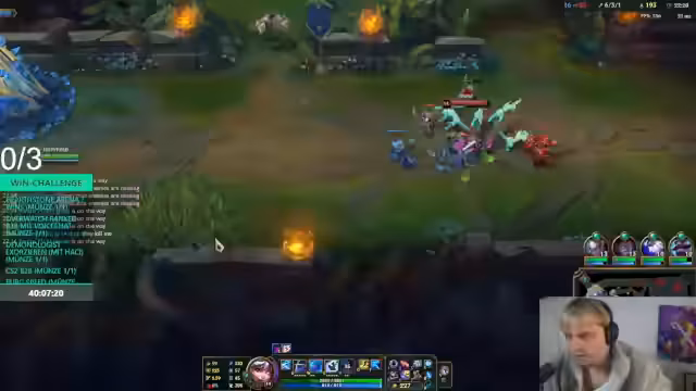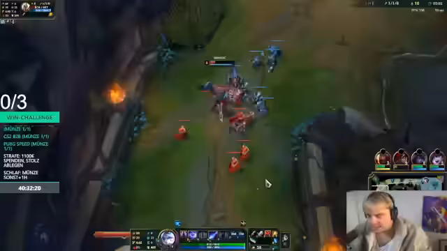 10:03:03Im Verlauf eines League of Legends-Spiels entsteht eine stark emotionale Reaktion. Der Streamer wirft seinem Mitspieler vor, eine schlechte Entscheidung getroffen zu haben, die zum Verlust führte. Er reagiert mit Wut und beschließt, die Challenge zu quitten, da er das Gefühl hat, das Spiel nicht mehr kontrollieren zu können. Nach einer kurzen Eskalation entschuldigt er sich und versucht, seine Frustration zu rationalisieren, indem er erklärt, dass sie auf seine eigene mangelnde Leistung zurückzuführen war.