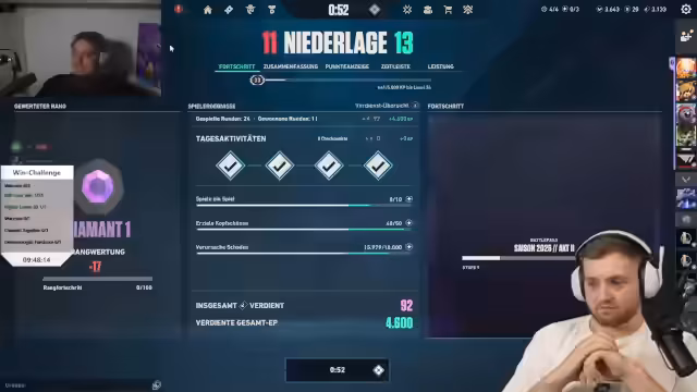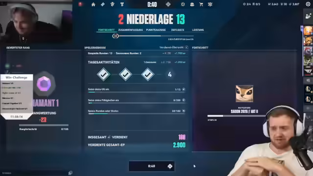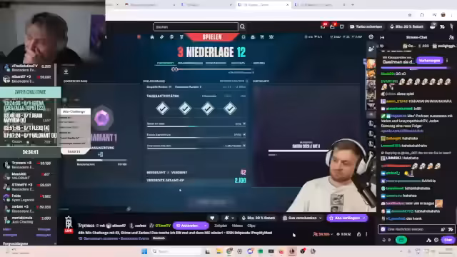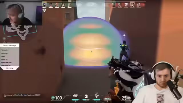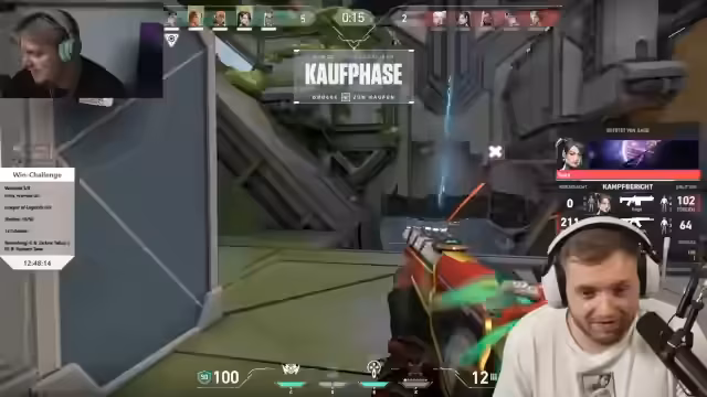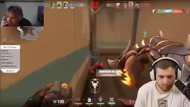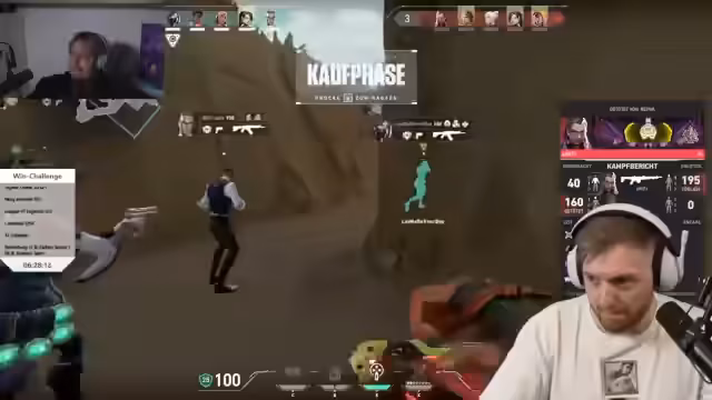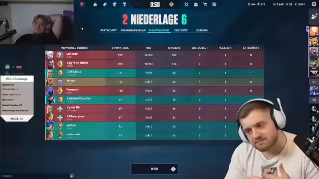 05:43:10Das Team erlebt eine Reihe von Niederlagen in Valorant, was zu Frustration führt. Spieler wie Panne haben Schwierigkeiten mit dem Spielstil und den Calls. Es werden Surrender diskutiert und Positionsfehler kritisiert. Der Streamer äußert Angst vor Thrombose aufgrund des langen Sitzens und berichtet von einem verzweifelten Versuch, eine Runde zu gewinnen, die dennoch scheitert.