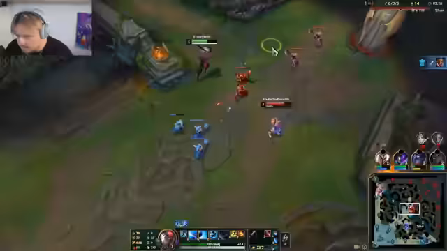 00:13:01Das Spiel beginnt mit einer strategischen Analyse der Rollenverteilung und der ersten Wave. Das Team plant, Level 2 Advantage zu nutzen, ohne in einen Fight mit Small Door zu ziehen. Der Mid-Lane wird als besonders wichtig identifiziert, da der Gegner sehr treu zu seinen Rollen steht. Der Streamer betont die Wichtigkeit von Warding und Informationsgewinnung im Jungle, besonders gegen Gegner wie Shyvana, die gute Gap-Closer haben.