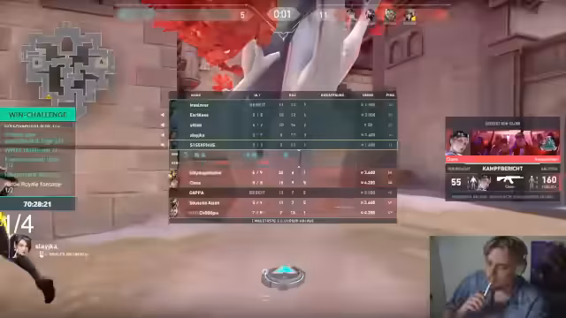 05:40:39Während des Spiels werden taktische Plays umgesetzt, wie das Aussenden von Dingen und der Einsatz von Fähigkeiten wie dem Sova-Dart. Jedoch wird der Spielverlauf durch erhebliche technische Probleme überschattet. Streamer und Teamkollegen erleben mehrmals Disconnects und Verbindungsabbrüche, was zu Frustration im Chat führt und die Zusammenarbeit unterbricht. Diese Probleme sind so gravierend, dass sie den Spielfluss stören und eine einheitliche Taktik unmöglich machen, was zu spontanen und oft chaotischen Aktionen führt.