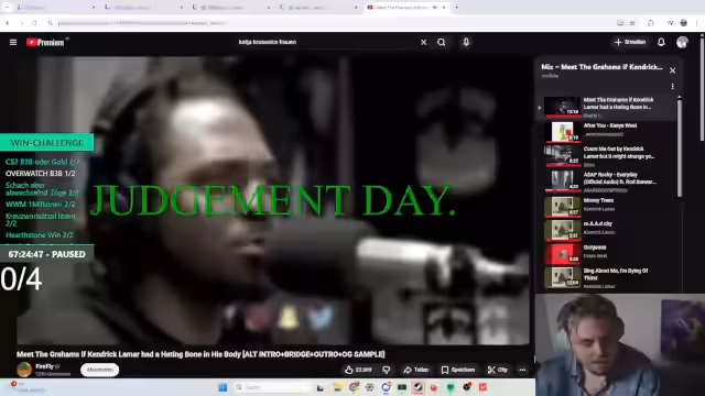 00:24:28Zu Beginn des Streams werden Pläne für eine League of Legends Back-to-Back Challenge besprochen. Paul wurde ursprünglich für das Team nominiert, wird jedoch auf Wunsch gestrichen, um als Reserve zu fungieren. Als wichtiger Fehlstart wird gemeldet, dass Danny, ein weiteres Teammitglied, nicht erreichbar ist. Als Grund wird ein angebliches technisches Problem mit OBS genannt, der Streamer jedoch zweifelt an dieser Ausrede und vermutet, dass Danny einfach nicht auftaucht. Die Suche nach einem Ersatz läuft, wobei Slayka als potentielle fünfte Kraft gehandelt wird. Gleichzeitig wird auf die Ankündigung eines gemeinsamen Streams mit oro watch hingewiesen.