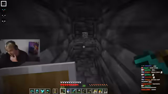 03:55:30Im Verlauf des Streams wird eine besonders tiefe und ergiebige Höhle entdeckt, die direkt von der Oberfläche in einen Krater führt und bei Höhe 57 endet. Die Wände dieser Höhle sind voller Diamanten, was als extrem befriedigend beschrieben wird. Parallel dazu werden die Ressourcen Eisen, Leder und Zuckerrohr für den Bau eines Verzauberungstisches gesammelt. Der Streamer erkundet ein Tunnelsystem, in dem er Diamanten findet, und plant, Obsidian für den Verzauberungstisch abzubauen, was jedoch einen Diamantspitzhacken erfordert.