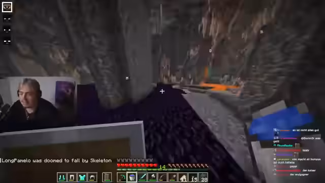 02:39:59Der Fokus verschiebt sich zur Dungeon-Suche, doch interne Streitigkeiten über Item-Verteilung (Schilde, Essen) und unklare Koordinaten blockieren Fortschritte. Spielsprache (z.B. 'LP-Stimme' als Running Gag) und chaotische Kooperationen mit anderen Spielern (Vadim, Rohrat) prägen die Phase. Der anhaltende Eisen- und Kohlemangel verhindert effizientes Crafting, während die Gruppe versucht, durch Mining und Dungeon-Eroberung Ressourcen zu sichern.