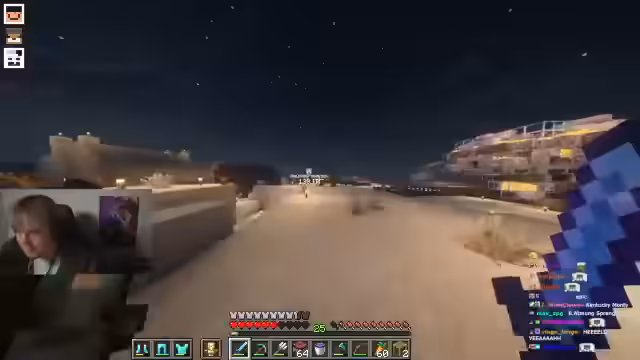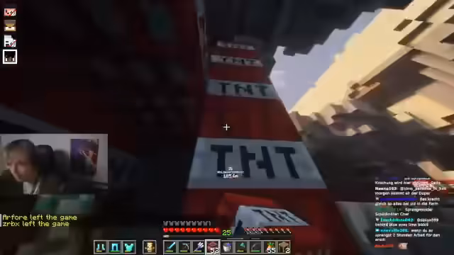 00:24:31Während der Vorbereitungen für die nun wieder anstehende Sprengung wird die Zusammenarbeit intensiviert. Eli, Sid und Willi koordinieren den Bau von Schutzmaßnahmen, insbesondere eine Wasserwand, um wichtige Farmen vor TNT-Schaden zu bewahren. Der Streamer platziert TNT und gibt Anweisungen, um sicherzustellen, dass nur das Zielgebiet betroffen ist und die umliegende Basis geschützt bleibt.