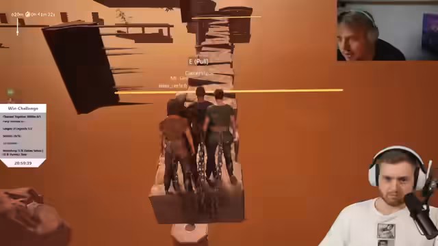 02:31:01Das Team verliert weitere 20 Minuten durch ein erneutes "Leck" im Spiel. Der Streamer ist verärgert, weil sie scheinbar nichts dafür können. Trotzdem bleibt das Team motiviert und versucht, das Problem zu lösen. Der Streamer erwähnt, dass das Spiel "Chained Together" nur von "Geeks" gespielt wird und dass sie keine normalen Menschen mehr sind. Er vergleicht das Spiel mit anderen Spielen wie "Fall Guys" und "Apex Legends".