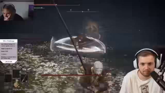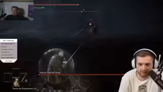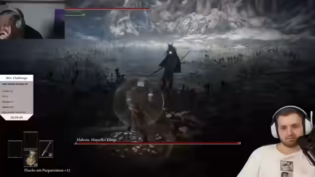 08:32:38Trimax' Frustration wird deutlich, da er seit 26 Stunden mitmacht und fühlt, dass er von Malenia verfolgt wird. Der Streamer gibt an, ebenfalls frustriert zu sein, und stellt fest, dass dies ihre Challenge ist. Es wird betont, dass man Angst vor dem Chat hat, weil die Erwartungen immer höher werden. Dies wird mit dem PUBG Back-to-Back verglichen, der 43 Stunden dauerte und von Stream-Snipern sabotiert wurde.