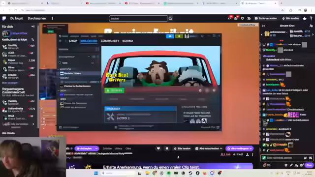 Es wurde ein nächtlicher Stream gestartet. Bei dem Spiel 'Backseat Drivers' wurde die Rolle des Fahrers übernommen, der sich auf die Anweisungen des Navigators verlassen musste. Dies führte zu anhaltendem Fahr-Chaos, da der Fahrer ständig auf Gegenstände auffuhr und die Anweisungen falsch umsetzte. Trotz mehrerer Versuche und Neustarts konnte kaum Fortschritt erzielt werden, da Kommunikation und Orientierung fortwährend Probleme bereiteten.