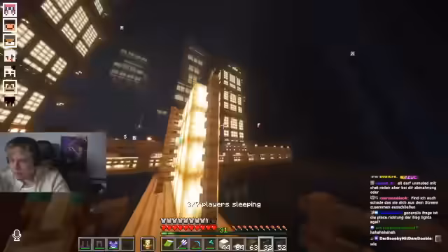 03:02:55Der Fokus liegt weiterhin auf dem Bauprojekt, bei dem nun die细节 wie Böden und Wände perfektioniert werden. Es wird über den schnellen Fortschritt an manchen Teilen gesprochen, was den Prozess motivierend macht. Gleichzeitig zeigen sich bei den Beteiligten zunehmend Anzeichen von Erschöpfung. Ein Teilnehmer spricht von Schmerzen und die allgemeine Müdigkeit wird zum bestimmenden Thema, was die Konzentration für die anspruchsvollen Bauaufgaben beeinträchtigt.