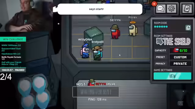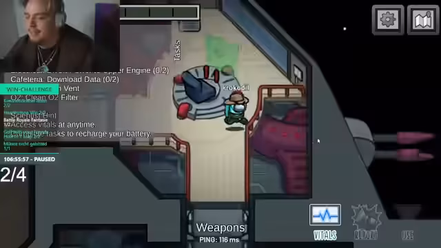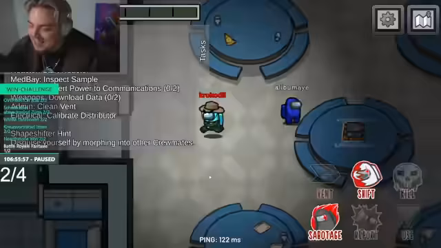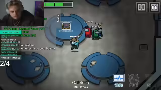 01:44:15Die Runde spitzt sich zu. Der Streamer gibt an, einen Selbstreport von Yusef gesehen zu haben, kurz bevor dieser starb. Er fordert die Mitspieler auf, Ali zu voten, da dieser verdächtig ist. Es kommt zu einem 50-50 zwischen Ali und Honeypoo. Der Streamer ist fest davon überzeugt, dass Ali ein Imposter ist, und wirft den anderen Spielern vor, sich von Ali täuschen zu lassen. Letztendlich wird Ali votet, doch nachdem der Streamer tot ist, gibt er zu, selbst der Imposter gewesen zu sein.