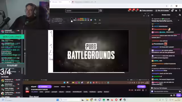 11:55:12Nach einem weiteren Täter, der die Münze geworfen wird, diskutiert der Streamer intensiv über seine PUBG-Challenge. Er hat 115 Stunden Spielzeit investiert und ist frustriert über die Notwendigkeit eines zweiten Münzwurfs, da er die Challenge als abgeschlossen betrachtet. Er vergleicht seine Challenge mit anderen, wie Valorant- oder Overwatch-Back-to-Back, und hält seine für härter. Statt erneut zu spielen, startet er eine neue Aktivität: eine Bitpanda-Investment-Challenge mit 5.000 Euro Startkapital, deren Ertrag für einen guten Zweck gespendet wird.