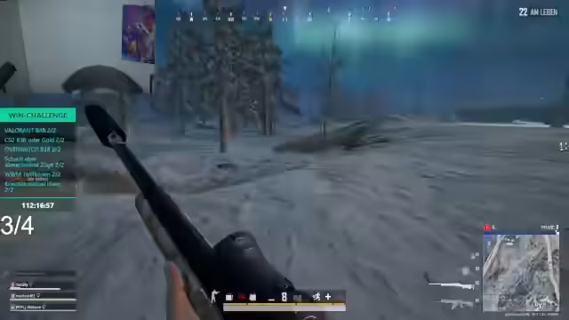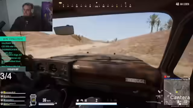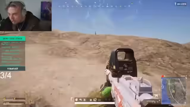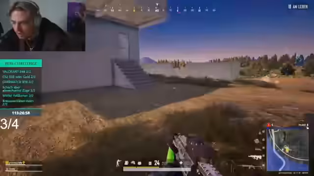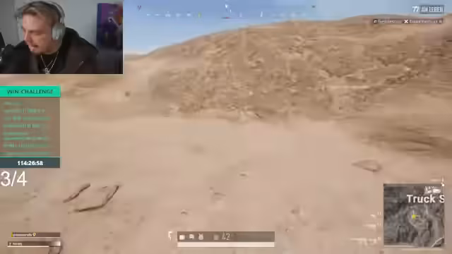 11:25:14Es geht direkt in die Action mit der Suche nach Gegnern und dem Lösen von Gegenständen. Der Streamer benötigt eine Reparatur-Kit und eine DMR und findet eine Dreherbiste. Er kritisiert einen Gegner, der laut im Chat schuldig ist, und erwähnt, dass er vergessen hat, den Overlay auszuschalten, was zu Verwirrung führt. Er fühlt sich dominant im Spiel, hat jedoch Angst, von einem Gegner namens Mirox besiegt zu werden, der据报道, jedes Spiel gewinnt. Er äußert den Gedanken, dass es ihm lieber wäre, PUBG nicht zu schaffen, um den Druck loszuwerden.