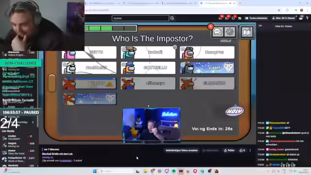 00:01:46Der Stream beginnt mit emotionalen und vulgären Reaktionen des Streamers nach dem Start. Es werden Updates angesprochen und das Spiel Among Us gestartet. Die erste Runde verläuft chaotisch, mit einem ersten Kill, bei dem der Streamer nicht sicher war, wer das Opfer war. Er beschreibt, wie er ein Teammitglied namens Isa attackiert hat, da er sie für verdächtig hielt. Der Streamer äußert Frustration über das Spielverhalten und wirft vor, dass sein Teampartner Willi nur Geschäftspartner sei.