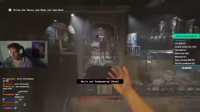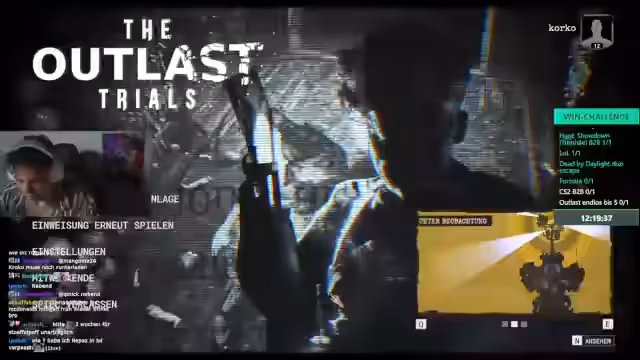 03:09:22Nach mehreren technischen Problemen und erfolglosen Versuchen, Fortnite und Warzone zu spielen, startet der Streamer mit Outlast Trials in einen Roguelite-Modus. Das Spiel erweist sich als anspruchsvoll, da der Streamer und sein Partner mehrere Herausforderungen bestehen müssen, dar das Überleben, das Umgehen von Fallen und das Entkommen aus dem Gefängnis. Der Streamer zeigt während des Spiels ein hohes Maß an Engagement und Frustration zugleich.