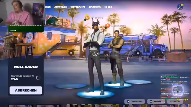 01:42:48Nach Ende des Spiels wechseln die Spieler zu einem anderen Titel, Hearthstone, und beginnen ein ranked Duell. Der Streamer läft in eine neue Lobby ein, während sein Mitspieler Philipp ein Match in Fortnite startet. Kurz darauf kommt es zu einem Wechsel, und der Streamer schließt sich Philipp in der Fortnite-Lobby an, um erneut zusammenzuspielen und eine Partei zu bilden.