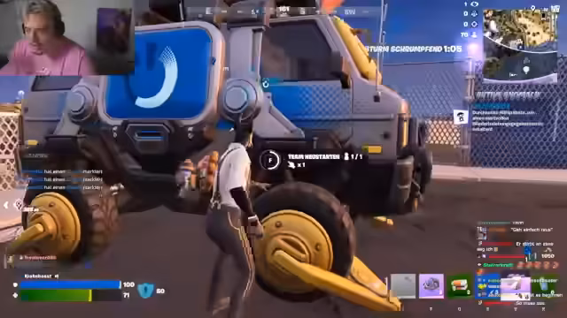 01:25:35Der Stream konzentriert sich auf ein Fortnite-Spiel mit sehr begrenzter Munition und Ausrüstung. Spieler diskutieren die Notwendigkeit von Loot und strategischen Entscheidungen, wie das Angeln oder das Nutzen von Minis. Sie kämpfen um Position, während die Zone schrumpft, und stoßen auf Gegner, was zu hitzigen taktischen Aktionen und Verlusten führt. Die Situation ist geprägt von Frust über die eingeschränkten Möglichkeiten und die permanente Bedrohung durch andere Spieler.