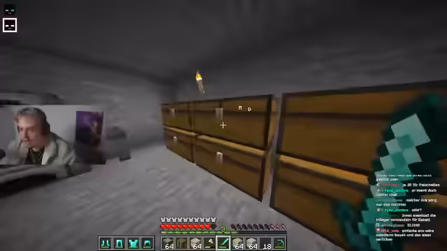 00:13:26Im Verlauf des Streams gibt es zunehmend Interaktion mit dem Chat, bei der versucht wird, gezielt Stress zu erzeugen. Der Streamer befragt die Zuschauer direkt nach ihrer Meinung und lässt sich eine Note von 1 bis 10 geben. Dabei reflektiert er über sein eigenes Verhalten, das im Chat auf eine unterschiedliche Wahrnehmung stößt, je nachdem, wer ihn anschaut. Parallel dazu werden im Spiel Probleme mit Creepern und Spinnen gemeldet, die eine Basis gefährden.