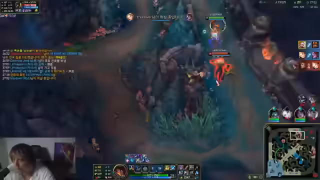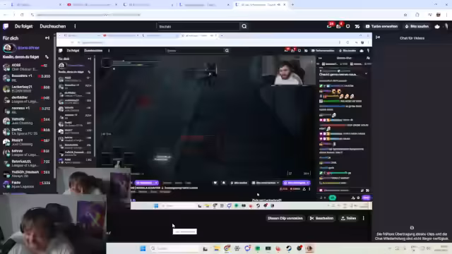 02:55:15Der Streamer spielt League of Legends auf der Bot-Lane mit dem Charakter Kiana und gerät in einen Fight. Gleichzeitig interagiert er intensiv mit dem Chat, begrüßt neue Follower und nimmt Spenden entgegen. Er versucht, seine Teamkameraden über das Spiel zu informieren, wird aber selbst in einen Kampf verwickelt, der mit dem Tod seines Champions endet. Der Fokus liegt auf der laufenden Aktion im Spiel und der rege Kommunikation mit der Community.