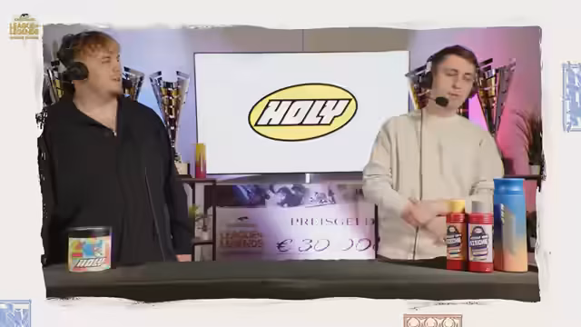 01:39:28Das erste Hydration-Getränk wird erwähnt, gefolgt von Ice Tea Energy und Milkshakes. Holy wird als Sponsor des Turniers hervorgehoben. Ein Gewinnspiel wird angekündigt, bei dem die Zuschauer ein Holy Starter Set Deluxe gewinnen können, bestehend aus einem Shaker und Probepaketen von Eistee, Hydration, Energy und Milkshakes. Zwei Gewinner werden ausgelost. Die Mods werden gebeten, die Gewinner zu ermitteln. Es wird darauf hingewiesen, dass einmaliges Schreiben des Wortes 'Holy' zur Teilnahme ausreicht und Followen die Gewinnchancen erhöht. Die ersten beiden Gewinner sind Rektor08 und EliteNiko-O, die zu Besitzern eines Holy Starter Sets Deluxe werden. Es wird eine kurze Pause eingeläutet, in der die Lobbys für das nächste Lower Bracket Semifinal erstellt werden. Die Hosts verabschieden sich kurz und kündigen an, sich bald wieder zu melden.