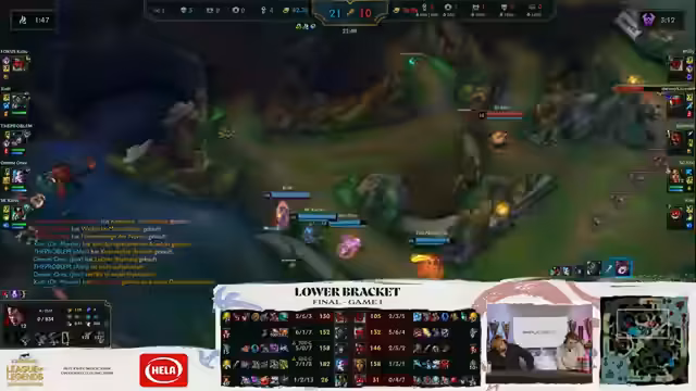 02:57:11Trotz der Kritik an den Item-Builds und der Strategie wird die Leistung von Willi gelobt, der als Stand-In das Finale erreicht hat. Das Team 'Die Engel von Maxi' feiert seinen ersten Sieg. Es wird darauf hingewiesen, dass das Team 'Jurassic Park' aus dem Turnier ausscheidet. Ein Interview mit Niek bezüglich seiner Item-Builds wird angekündigt. Es folgt eine Verlosung eines Jahresvorrats Ketchup, bei der Zubasa Tiger als Gewinner ermittelt wird. Das Finale zwischen 'Team Schuld und Sühne' und '4 Engel für Maxi' wird angekündigt, ein Best-of-3 im Fearless-Format, bei dem jeder Champion nur einmal gepickt werden darf. Die Spieler werden vorgestellt, darunter ein Top-Lane-Match-Up zwischen Kuba und Willi. Es gibt technische Probleme bei Willi und Indian Faker, was zu einer Verzögerung des Drafts führt. Die Bedeutung des Impuls-Shops und des Rabattcodes wird hervorgehoben, bevor der Draft für das Finale beginnt.