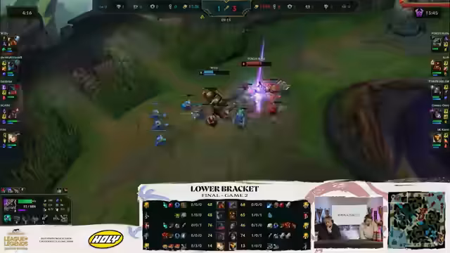04:32:21Zane's CS-Defizit erreicht 40, aber er hört auf sein Team, indem er am Tower bleibt und nicht feedet, obwohl er dadurch Farm verliert. Sartorius kann ohne Kills nicht carryn, und das Spiel ist langsam. Die Toplane gewinnt automatisch, ohne dass Ganks erforderlich sind. Ein Gank auf der Toplane führt zu einem Solo-Kill von Aatrox auf Zane, da Zane keine Items hat und nicht zur Basis zurückkehrt. Zane macht denselben Fehler wie die Kommentatoren in der Vergangenheit: zu sicher spielen aus Angst vor Gegnern, was ihn behindert. Bimmy kauft Thornmail als erstes Item, und Kuba's Nasus-Pick wird als gut bewertet. CEO's schlechte Shockwave und der zweite Drache werden diskutiert. Ein Teamfight in der Mitte führt zu einer Zero-Ult von Orianna, die aus allen Rohren feuert. Der Drake ist frei, es sei denn, es gelingt ein Steal. Ein Teamfight wird überraschend gewonnen, dank des Peels von Zahra, des Blocks von SGAri und des Snipes von Phoebe. CEO's wiederholtes Feeden und Kuba's Rolle als Frontline werden analysiert. Nasus' Stacks werden mit 406-429 als gut für Competitive bewertet. Harnis' Superfeed wird diskutiert, und Kuba's Nasus-Pick wird als effektiv gegen Aatrox angesehen, da Aatrox keinen AD-Damage hat. Die schlechte Bard-Ult und Sio's Versuche werden ebenfalls erwähnt. Willi kämpft um sein Leben, während zwei Tower in der Mitte fallen. Kuba's Stärke wird hervorgehoben, aber es wird auch darauf hingewiesen, dass er gut gekitet werden kann. Das Spiel ist schwierig zu spielen und erfordert viele Catches. Romatra's schlechtes Balancing wird kritisiert, da es unfair ist. Trotz schlechterer Drafts können Teams gewinnen, wenn sie besser spielen. Willi wird als Löwe bezeichnet. Das Team sichert sich den Baron und gewinnt das Spiel mit einem 2:0. Die Gewinner werden beglückwünscht und erhalten 2000 Euro pro Person. Kuba wird für seinen Nasus-Pick gelobt, der ihm geholfen hat, das zuvor verlorene Geld zurückzugewinnen. Die Calls der Pros werden als gut und führend beschrieben. Willi wird für seine Leistung gelobt, obwohl er erst seit zwei Monaten spielt. Black Faker wird ebenfalls gelobt. Die Teams gehen in eine kurze Pause, um ihre nächsten Drafts zu planen, da es sich um einen Veto-Draft handelt, bei dem jeder gepickte Champion nicht mehr gepickt werden darf.