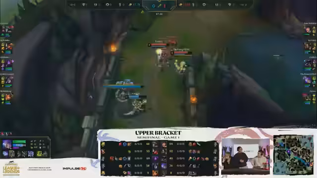 06:31:32Nach den ersten Runden der Semifinals im Upper Bracket, die im Best-of-Three-Format ausgetragen wurden, konnten sich Ente Quark Quark und Many Man (Wish Death 1950s Soul Version) durchsetzen. Die Teams sind nun mit jedem weiteren Spiel limitierter und müssen ihre Strategien anpassen. Der Fokus liegt als Nächstes auf dem Team von Many Man. Es gab humorvolle Einlagen und Diskussionen über das Balancing im Spiel, wobei ein Spieler namens Chef Strobel sich über unfaire Matchups beschwerte, da er als Silberspieler gegen deutlich stärkere Gegner antreten musste. Die Caster verstanden seine Frustration, da das Balancing als 'unglaublich unfair' beschrieben wurde.