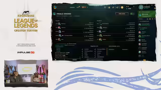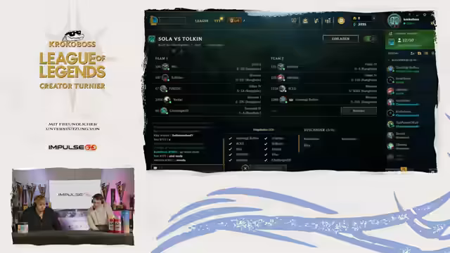 00:17:52Der zweite Turniertag des Krokoboss Invitational startet mit den Lower Bracket Semifinals. Das erste Match des Tages ist Chef Strobl gegen Kuba Toplane, auch bekannt als Schuld und Sühne gegen Grimms Märchen. Es wird auf spannende Matches gehofft, insbesondere nach den emotionalen Ausbrüchen des Vortages. Die Turnierorganisatoren betonen, dass alle Teams angefeuert werden, obwohl Schuld und Sühne durch die Ereignisse des Vortages zu einem Publikumsliebling avanciert sind. Die Vorfreude auf das Turnier und die einzelnen Spielerleistungen ist groß, wobei besonders die XDD-Momente von Kuba und die 'Jaulung' von Chef Strobl hervorgehoben werden. Das Turnier bietet ein Preisgeld von 10.000 Euro für das Lower Bracket Finale und weitere 20.000 Euro sowie fünf Pokale für das Grand Finale, ermöglicht durch Sponsoren wie Holy, Hela und Impuls.