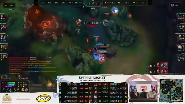 11:15:59Das Spiel entwickelt sich weiter mit kritischen Teamfights und der Diskussion über Goldvorteile. 'Chico' wird in der Midlane stark unter Druck gesetzt und stirbt bei einem Tower-Dive. Die Kommentatoren kritisieren die mangelnde Präsenz von 'Eni' im Spiel und seinen geringen Einfluss. Es wird der erste Drake-Fight des Spiels analysiert, und die Kommentatoren stellen fest, dass 'Power of Evil' in diesem Spiel 'Omega useless' ist. Das Gold-Verhältnis wird betrachtet, und 'Hanky' hat das meiste Gold im Spiel, obwohl er lange Zeit unter dem Turret war. 'Nicoletta' sammelt zum ersten Mal den Herald ein, was als Zeichen der Redemption gewertet wird. Ein Teamfight um den Drake führt zu weiteren Kills und einem Goldvorteil für das blaue Team.