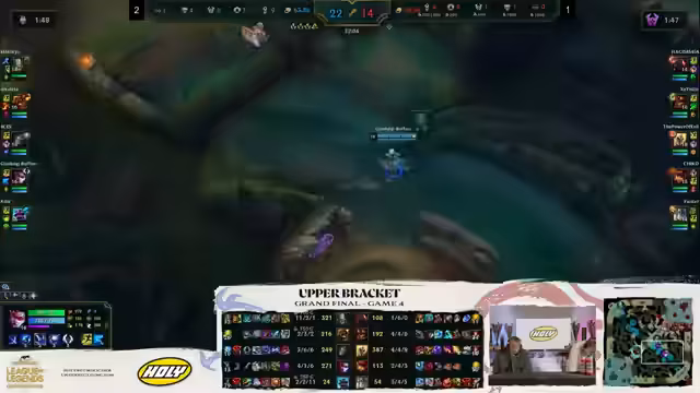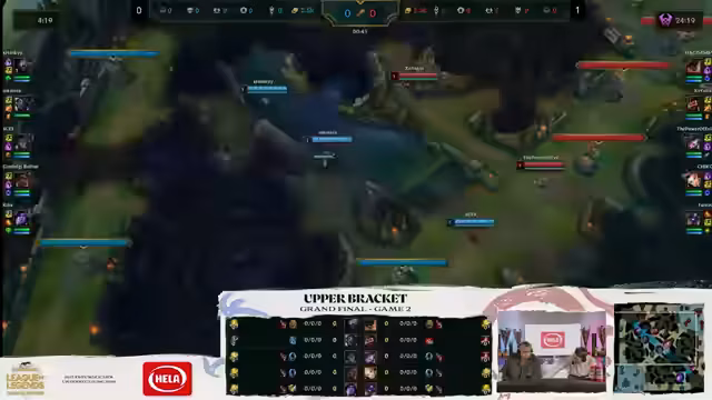 01:33:24Ein guter Catch gelingt, bei dem Kani zum Gejagten wird, was jedoch keinen direkten Vorteil bringt. Es wird spekuliert, ob Chef Strobel einen 1 gegen 2 Kampf gewinnen kann. Ein Bait von Xio wird gelobt, der jedoch die gesamte Ult blockt und trotz abgelaufener Ult erneut in den Kampf geht. Xio tankt das gesamte gegnerische Team und sichert so den Sieg für sein Team. Xio wird für seine Solo-Show und das Blocken des gesamten Schadens von Grimms Märchen gelobt. Kani wird ebenfalls für seine kontinuierlichen Ulti-Catches während des gesamten Spiels hervorgehoben. Es wird vermutet, dass Chef Strobel konstant in den Split-Push hätte geschickt werden müssen, da sein Champion in Teamfights weniger Impact hatte. Grimms Märchen scheidet aus dem Turnier aus. Die Hosts bedanken sich bei den Spielern von Grimms Märchen und hoffen, dass sie den Rest des Turniers genießen können. Die Gewinner des Lower Bracket Finales, qualifiziert für 10.000 Euro, können ihre Gegner nun spectaten. Es wird eine kurze Pause angekündigt.