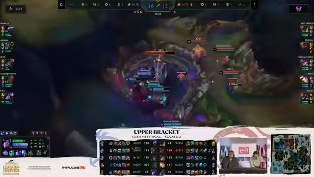 12:27:41Die Kommentatoren wünschen sich mehr Kampf von Hachi, der bisher eher passiv agiert hat. Trotz eines guten Flashs wird Hachis Positionierung als unnötig kritisiert. Power of Evil hingegen zeigt eine beeindruckende Leistung mit fast 400 CS bei Minute 30 und wird von den Kommentatoren als Top-1-Spieler gelobt. Die Diskussion über die Möglichkeit eines Reverse Sweeps und die Bedeutung von Game 5 zeigt die hohe Spannung. Ein wichtiger Catch auf Kiba und ein Elder Soul-Kampf stehen bevor, was die entscheidende Phase des Spiels einläutet. Das Team, das den Elder Soul sichert, hat einen enormen Vorteil.