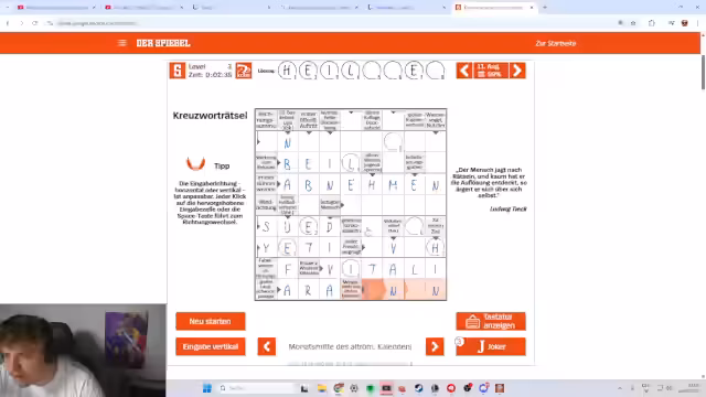 00:30:03Der Streamer und seine Mitspieler diskutieren über ein Spiel mit übertriebener Darstellung weiblicher Brüste und vergleichen es mit Resident Evil 2 bezüglich des Plots. Das Spiel wird als Horror-Game dargestellt, wobei die Protagonisten große Brüste haben. Es wird auch ein neues Spiel namens School 666 vorgestellt, ein Anomalie-Horror-Game, das sie zusammen spielen wollen. Während des Downloads des Spiels mit 16 GB, löst der Streamer Kreuzworträtsel und interagiert mit dem Chat, wobei er Hilfe bei Fragen wie 'Styling-Produkt für die Haare' und 'kleines Nagetier' sucht. Es werden verschiedene Begriffe erraten, darunter 'Gel', 'Maus', 'Yeti' und 'Lama'. Nach erfolgreichem Lösen des Kreuzworträtsels bereiten sie sich auf das neue Spiel vor. Es gibt Diskussionen über die Übersetzung im Spiel, insbesondere den 'Hardcore-Modus-Behindert', was zu Belustigung führt. Der Streamer wählt eine LGBTQ-Icon als Charakter und bereitet sich darauf vor, von Niek gerettet zu werden, falls Hilfe benötigt wird.