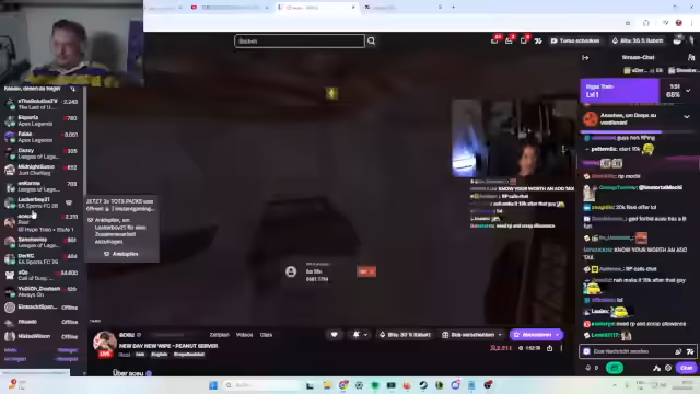 00:02:35Der Streamer begrüßt seine Zuschauer nach einer durchgeschlafenen Nacht, nachdem er sich in den letzten Tagen durch seine eigene Verantwortungslosigkeit gequält hatte. Er erzählt scherzhaft von einer "metaphorischen" Hochzeit mit Alexandra Daddary an der Côte d'Azur, während die "echte" Hochzeit in Peru stattfinden soll. Der Chat reagiert verwundert, besonders auf die Andeutung, dass Meerschweinchen als Hochzeitsspeise serviert werden könnten. Der Streamer unterhält sich auch über sein Aussehen und vergleicht sich mit verschiedenen Charakteren und Schauspielern, darunter Loba aus Apex Legends und Tom Hanks/Ryan Gosling in einer fiktiven Kombination.