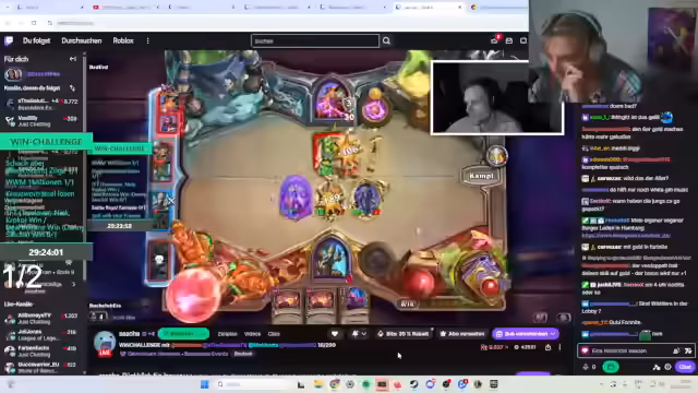02:18:05Nach den technischen Problemen mit Battlegrounds entscheidet sich die Gruppe, mit einem komplett anderen Spiel fortzufahren. Sie wechseln zu Hearthstone, einem digitalen Sammelkartenspiel. Einige Teilnehmer, insbesondere Anfänger, benötigen grundlegende Erklärungen zu den Mechaniken wie Verkaufen von Karten und Level-Up-System. Die Runde beginnt, aber es herrscht anfänglich große Verwirrung über das Spielziel und die optimalen Spielzüge.
