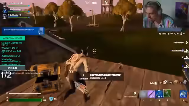 04:02:41Der Stream beginnt mit einer Runde Fortnite, in der das Team taktische Entscheidungen diskutiert und Debatten über Spielmechaniken wie 'No-Bauen' führen. Ein Teilnehmer gibt auf, was zu Frust über die verlorene Chance führt, ein 'Titus'-Item zu finden. Der Streamer äußert seine Unzufriedenheit mit dem Spiel, wobei er den eigenen Spielstil ('Pushen') gegen die des Teams abwägt, und die Atmosphäre von spannungsgeladen bis demotiviert schwankt. Der Fokus liegt dabei weniger auf dem Sieg als auf den innergrupplichen Dynamiken und den verpassten Möglichkeiten.