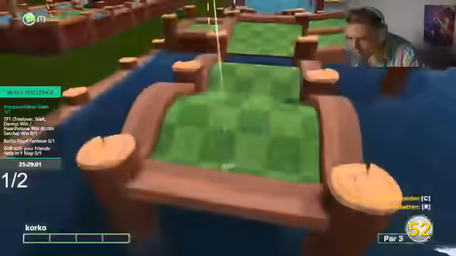 00:51:25Nach anfänglichen Schwierigkeiten finden einige Teilnehmer, wie Sascha, den Einstieg in das Spiel und erzielen 'Hole in One'-Schläge. Ein neues Bewusstsein für die Spielmechanik entsteht, insbesondere wie man mit den Physik- und Kollisionseffekten umgehen muss. Die Stimmung verbessert sich merklich, als die ersten Löcher erfolgreich gemeistert werden. Die Kommunikation im Team intensiviert sich, und es entsteht ein dynamischer Wettbewerb, bei dem die Spieler sich gegenseitig motivieren und sich über ihre Fehlschläge lustig machen. Die Challenge gewinnt an Fahrt.