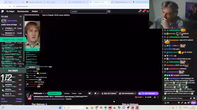 07:35:47Ein hochdramatisches Fortnite-Spiel endet in einem katastrophalen Fiasko. Bei einer knappen 3-v-4-Situation werden teaminterne Kommunikationsfehler deutlich, die zu einer schnellen Niederlage führen. Der Streamer ist frustriert und zweifelt an der Lobby-Qualität. Ein Teammitglied verlässt den Stream spontan, während ein weiteres versucht, die moralische Integrität der Männer-Challenge infrage zu stellen, indem er für einen Sieg mit weniger Teammitgliedern plädiert.
