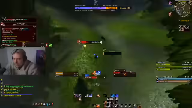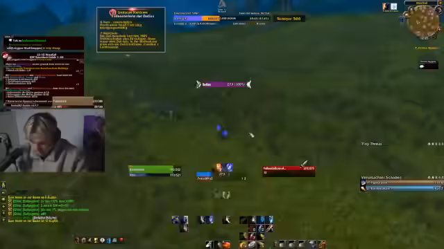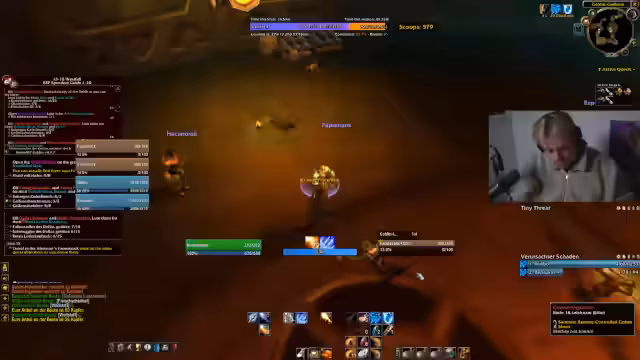 05:59:25Die Gruppe startet den Dungeonlauf in Westfall, wobei sie auf erhebliche technische und spielinterne Schwierigkeiten stößt. Die Gruppenmitglieder sehen sich gegenseitig nicht im Chat, was die Koordination erschwert. Es kommt zu mehreren Toden, was zu Frustration führt. Insbesondere der Tod von 'Kevin', ein reicher Spieler, wird thematisiert, der trotz seiner财物 und mächtigen Ausrüstung schnell ums Leben kam.