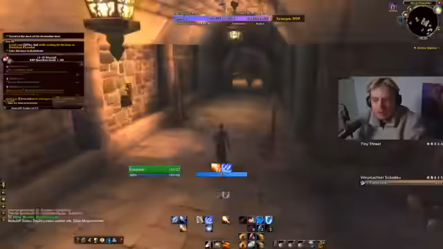 05:30:31Der Stream beginnt mit einer Begrüßung im Gildenchat, wo nach VZ in der Gilde gefragt wird. Es folgt ein persönlicher Austausch, bei dem es um aktuelle Befindlichkeiten und prophezeite Erlebnisse geht. Anschließend wird ein gemeinsames Vorhaben in den Deadmines besprochen, wobei spezifisch nach Equipment für einen Papier-Tank und für einen Magier gesucht wird. Die Gruppe plant, den Dungeon durchzuführen, um Ausrüstung zu erhalten, und erwähnt einen weiteren Spieler namens Wilbo, der als High-Level-Magier (Stufe 56) hinzustoßen soll.