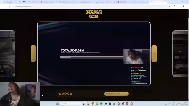 02:36:40Die Teilnehmer bewerten nominierte Clips für die Stream-Awards. Dabei werden Kategorien wie 'Bester Gaming-Moment', 'Rage-Clip' und 'Bester IRL-Moment' diskutiert. Clips mit Formel-1-Szenen, League-of-Legends-Gameplays und emotionalen Ausbrüchen werden analysiert. Es wird betont, dass Kontext entscheidend ist: Ohne Hintergrundwissen verlieren Clips an Wert, während rage-basierte Szenen wie ein detaillierter Backseat-Gaming-Moment als universell verständlich gelten. Mehrere Clips werden mit Sternen (1-5) bewertet, wobei die Community- und Mod-Stimmen für die Endentscheidung eine Rolle spielen.