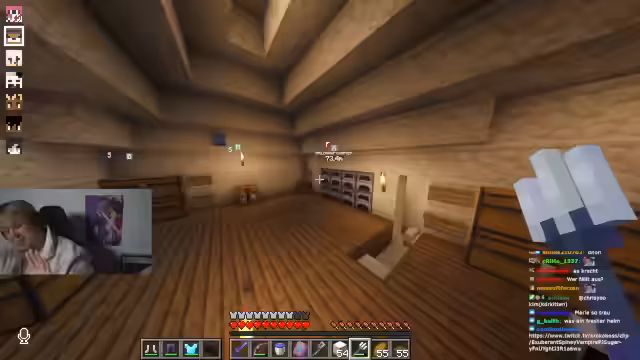 05:57:10Merle ist unter großem Stress und sucht nach einem geeigneten Material für ein Sofa im Meetingraum, idealerweise etwas mit Slaps oder Stufen. Die Dringlichkeit, das Gebäude fertigzustellen, ist hoch, und es wird sogar in Erwägung gezogen, offstream weiterzuarbeiten, um Ablenkungen zu vermeiden. Trotz des Stresses hat Merle die Flügel und Elytren bereits verzaubert, was auf ihre Effizienz hindeutet. Die Suche nach schwarzen Holz und anderen Materialien für den Bau geht weiter, während die Spieler versuchen, ihre Basis zu verbessern und sich auf kommende Herausforderungen vorzubereiten. Die Teammitglieder unterstützen sich gegenseitig bei der Beschaffung von Gegenständen und der Bewältigung technischer Probleme.