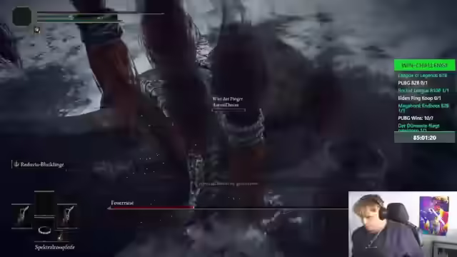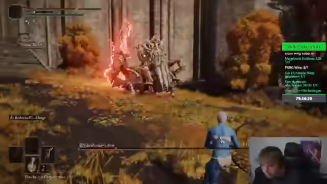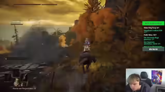 16:11:48Es treten technische Probleme auf, die dazu führen, dass der Streamer im Boden stecken bleibt. Er vermutet, dass ein Neustart des Spiels erforderlich ist. Es wird diskutiert, ob der aktuelle Fortschritt gespeichert wurde. Ein anderer Spieler (Silie) verlässt das Spiel, kann aber wieder beitreten. Der Streamer feuert den anderen an und lobt seine Leistungen. Er erhält 3,6 Millionen Runen durch den Sieg. Es wird nach den verwendeten Talismanen gefragt, da der Schaden ungewöhnlich hoch ist. Der Streamer erklärt, dass die Waffe von sich aus passiven Schaden verursacht. Es wird beschlossen, schnell einen bestimmten Gegenstand (Peeler) zu holen. Es wird festgestellt, dass sich der Gegenstand an einem anderen Ort befindet als erwartet. Der Streamer äußert Frustration darüber, dass er die Karte nicht öffnen kann und dass die Orientierung im Spiel schwierig ist. Er läuft zurück zu einem Ort der Gnade, um sich neu zu orientieren. Es wird erwähnt, dass ein Teammitglied keinen Anteil an einem Gewinn erhalten hat, was zu einer Diskussion über Ehrlichkeit und Geschäftspraktiken führt.