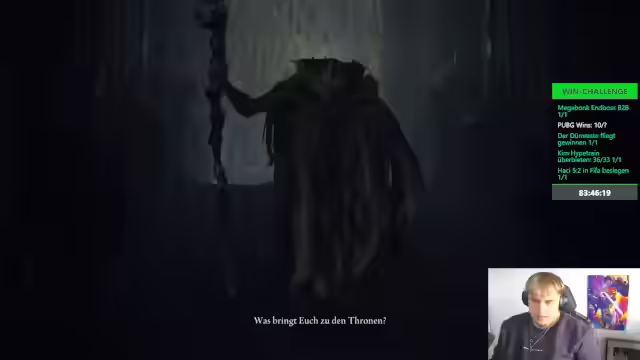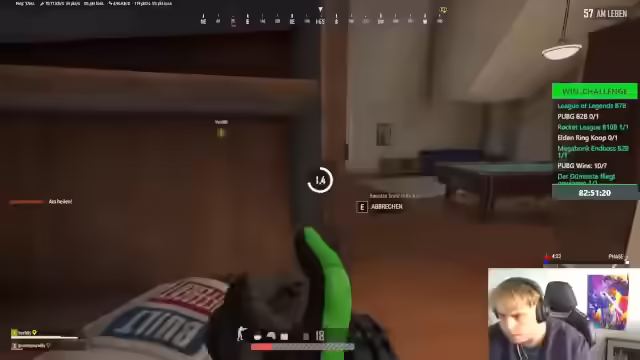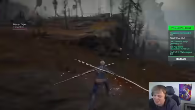 15:48:41Der Streamer gerät in eine schwierige Situation im Spiel, aus der es scheinbar keinen Ausweg gibt. Er beschreibt einen Ort, an dem man nicht herauskommt und überlegt, ob Wegtippen die beste Lösung ist. Es wird die Frage aufgeworfen, ob es ein Schwert mit einer bestimmten Eigenschaft gibt, das gegen einen bestimmten Gegner (Feuerriesen) hilfreich wäre. Der Streamer stirbt im Spiel und verliert seine Runen, was zu Frustration führt. Er plant, es erneut zu versuchen. Es wird überlegt, ob man eine Brille benötigt, um besser zu sehen. Der Streamer beschreibt ein Gefühl der Hoffnungslosigkeit und sieht das PUBG-Overlay grau vor sich. Er erkennt, dass die Müdigkeit zu Fehlern führt und dass Streamsniper die Situation zusätzlich erschweren. Trotzdem gibt er nicht auf und betont, dass sie kurz davor sind, es zu schaffen. Der Streamer berichtet von StreamSnipern, die mehrfach ihre Versuche sabotiert haben, sodass sie bestimmte Taktiken gar nicht erst ausprobieren konnten. Er erwähnt, dass sich Leute umbenennen, um sie zu ärgern, aber sie sich davon nicht unterkriegen lassen.
