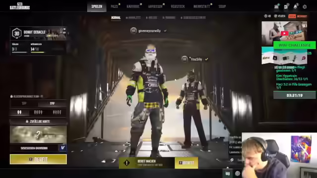 14:38:33Es wird angekündigt, dass PUBG wegen Streamsnipern pausiert wird und wahrscheinlich Offstream gespielt wird. Die Streamsniper werden als bessere Spieler als man selbst beschrieben. Kreative Aktionen wie die von Kufhunter werden respektiert. Es wird eine Ansage an Ramson gemacht, falls sie wirklich diejenige war, die im Stream gehört wurde. Der Streamer will zuerst mit Skorps vorgehen. Es wird gelaufen und festgestellt, dass keine Rüstung vorhanden ist. Trotzdem wird ein guter Morgen gewünscht und die Freude am Leben betont. Es wird ein Meme-Potenzial in der Situation gesehen. Andere Gamer würden gebrochen sein, aber man selbst gibt immer Stich, in-game.